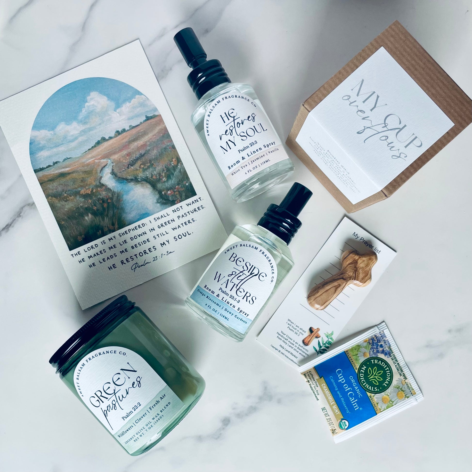 A curated set inspired by Psalm 23, created for rest, renewal, and quiet reflection.